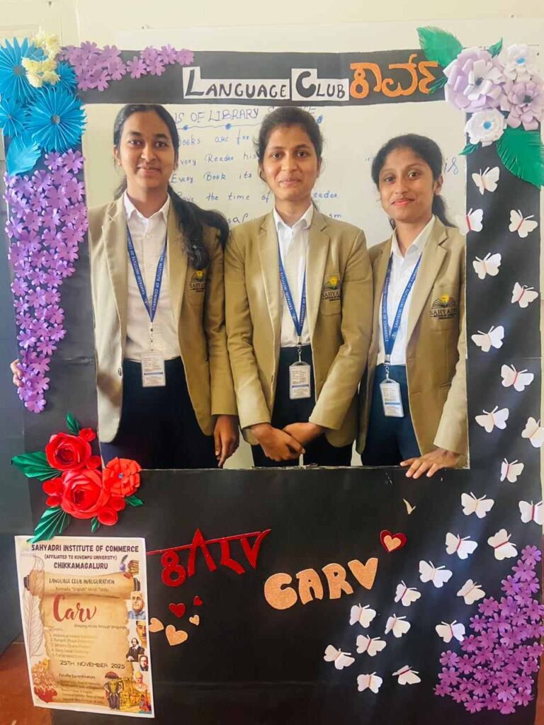 The Sahyadri Institute of Commerce formally Inaugurated its multilingual Language Club “CARV” On 25 November 2025. The Club aims to enhance Linguistics Competence, Promote Cultural Literacy and Create an inclusive Platform for academic enrichment across Kannada, English, Hindi and Urdu.
